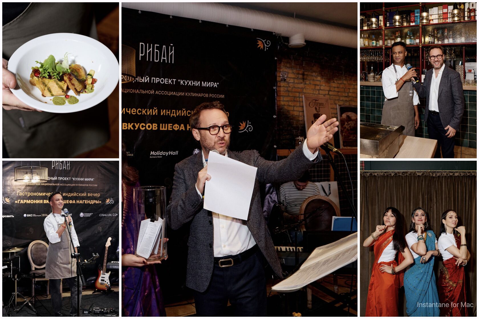 Ключевой фигурой вечера стал шеф‑повар Нагендра Махадеваппа, член международной команды проекта "Гастрокэмп". Его 19‑летний опыт работы в премиальных ресторанах по всему миру, сотрудничество с идийским обладателем двух звёзд Мишлен шефом Винетом Батия и участие в проектах московского ресторатора Степана Михалкова сделали его признанным амбассадором индийской гастрономии в России.
